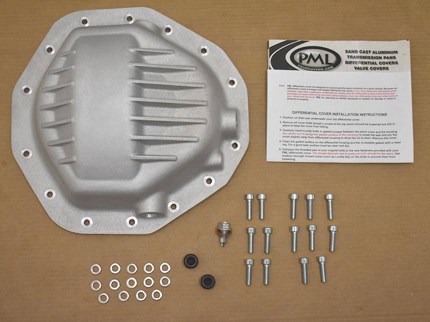 PML includes a magnetic drain plug with sealing washer, new mounting bolts and washers, and fill plugs with each cover.