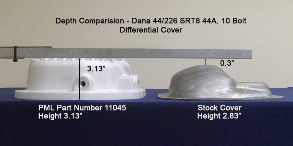 PML designed this differential cover for the Dana 44A. The Dana 44A is also called Dana 226, Dana 44 SRT8, and Dana Super 44. This differential is found on the rear of some WK, WJ and XK Jeeps, such as SRT8 models of Grand Cherokee.