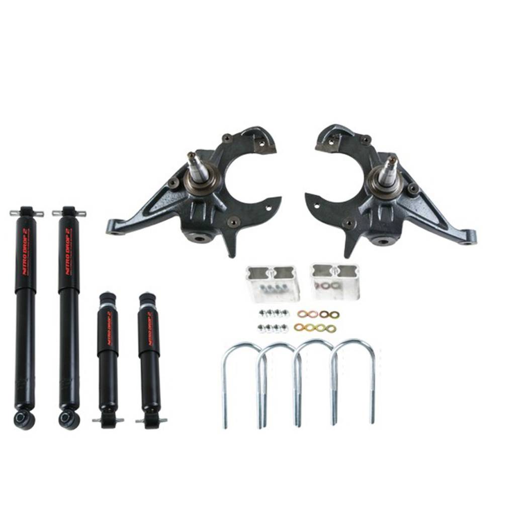 Lower your Sport Truck or SUV right the first time. Belltech Nitro Drop 2 complete lowering kits include all the parts, pieces and shock absorbers you need to achieve not only the look you WANT, but the ride quality, performance & safety you NEED. Belltech engineers have reviewed the most popular setups for each Sport Truck or SUV in our application range and developed the Belltech Complete Kit Line to simplify your purchase. These complete lowering kits are your all in one box solution. Made up of a variety of combinations of our individual lowering components as well as all the grade 8 installation hardware and alignment pieces necessary to achieve the advertised lowering amount, choosing your kit has never been simpler.