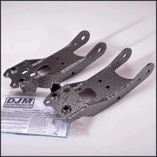 Our Bolt on control arms will drop your front end 3 inches without making any load changes on your torsion bars. Add DJM's famous Universal Lowering Block kits (3" kit) and you have a 3inch front and 3 rear kit! An easy to install, affordable lowering kit for your project.