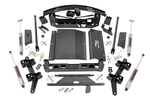Get a huge boost for your '88 - '98 Chevy / GMC 1500, Tahoe, and Suburban with Rough Country's all-inclusive 6-inch Suspension Lift. With a set of beefy front and rear crossmembers and differential drop brackets, this kit can take what you dish out and keep on kicking. A set of drop-torsion bar brackets and a durable front skid plate both feature laser-cut RCX logos that peak out from under the frame, giving your vehicle an unmistakable look. This kit ships with a massive steering link and heim joint assist link. Rear lift blocks and add-a-leafs give plenty of clearance - enough to accommodate up to 35-inch tires. Our new and improved design allows your vehicle to retain it's stock track width, and installation is now even easier.