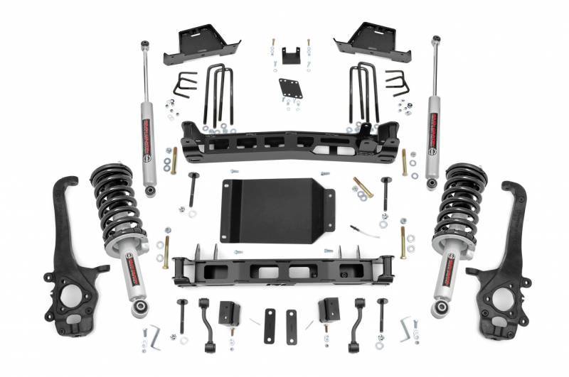 Release your Nissan Titan's inner beast with Rough Country's 6-inch Suspension Lift! This durable, all-inclusive lift kit comes with everything you need for smooth off-road performance and aggressive good looks. Featuring beefy lifted knuckles and unrelenting front and rear crossmembers, your Titan is ready for the road less traveled. This kit also features a Differential Skid Plate, Fabricated Lift Blocks, Brake Line Brackets, and more! Gain increased ground clearance and enough ride height to run up to 35-inch tires. This kit includes Rough Country's Lifetime Replacement Warranty!