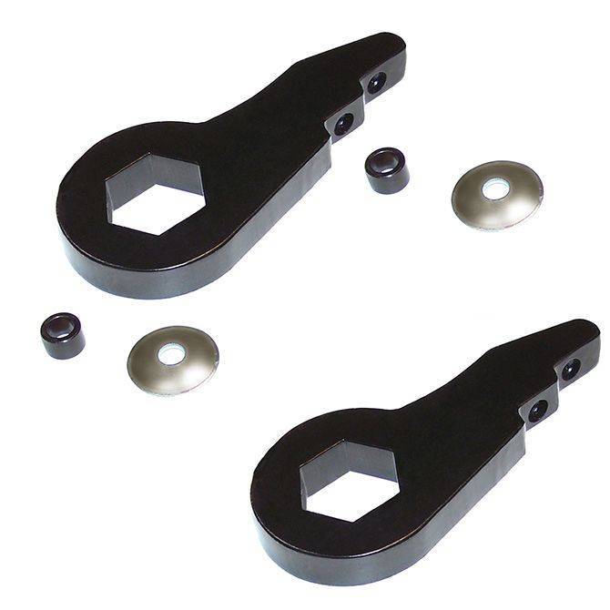 The torsion bars have a tremendous pre-load or ‘twist’ in them. The torsion bars are what determine the ride height of the suspension. These torsion bars have a certain amount of adjustment built into the factory system. Torsion bar keys have hex-cut (or splined) holes that mate to the rear ends of the torsion bars. This adjustment takes place via a bolt that indexes on a torsion key attached to each torsion bar. Simply ‘cranking up’ the factory system is not the right way to go about gaining minor amounts of lift due to a number of factors.