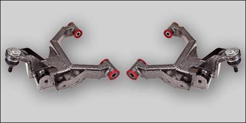 Stock coil springs with lowering control arms drop the front 3 inches. A rear axle flip kit results in a five inch drop. New ball joints, urethane bushings and "twin sleeve" pivot tubes come preinstalled.