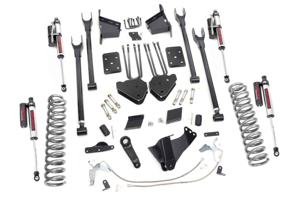 Gain greater travel and improved handling while adding ground clearance and aggressive style with Rough Country’s 4-Link F-250 Lift Kit.