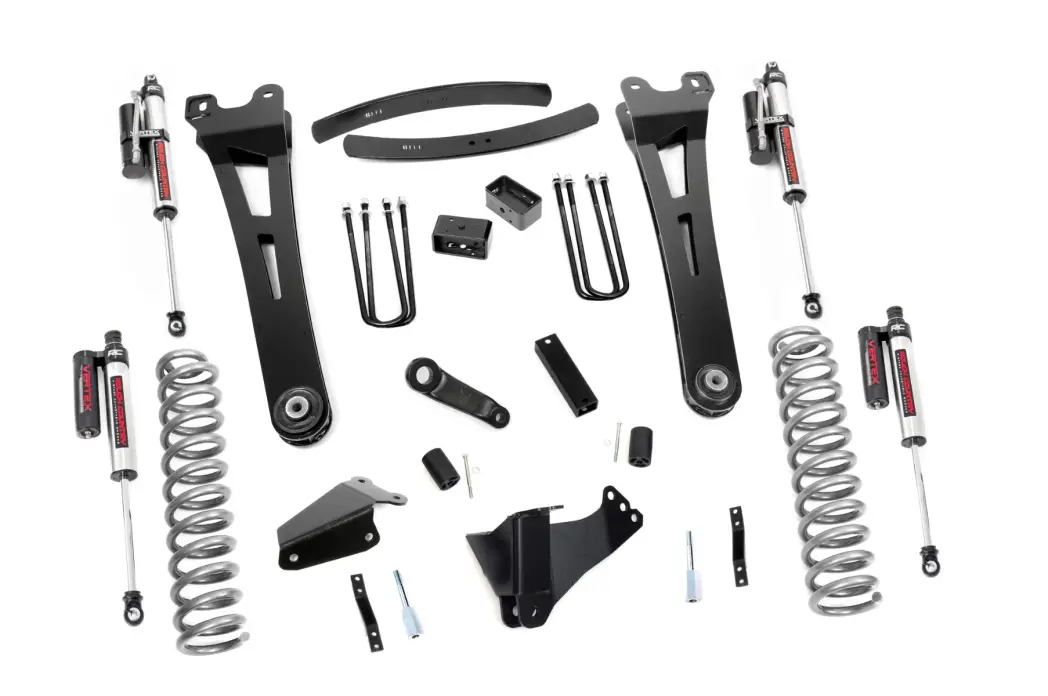 This innovative kit design features a 100% bolt-on installation process that is lightning fast compared to other kits this size. Save time and money with no need for cutting, drilling, or other complicated procedures. Rough Country's 6-inch Radius Arm Lift Kit is backed by our Lifetime Replacement Warranty.