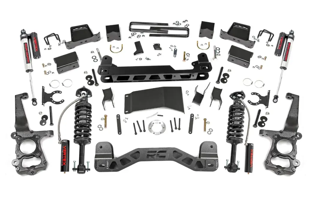 Transform Your F-150 with Aggressive Style and Trail-Ready Performance: Take your Ford F-150 to the next level, both in looks and capability, with Rough Country's 6-Inch Suspension Lift Kit. Engineered for serious off-road enthusiasts, this all-inclusive kit gives your truck a commanding stance and the clearance needed to conquer rugged terrain with confidence.