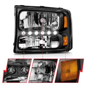111106 | Anzo USA Crystal Headlights Black w/ LED 1pc (2000-2004 Excursion | 1999-2004 F250, F350 Super Duty)