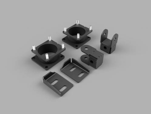 Each kit contains two front strut spacers, sway bar mount extensions, all required hardware, detailed instructions and complete alignment specs.