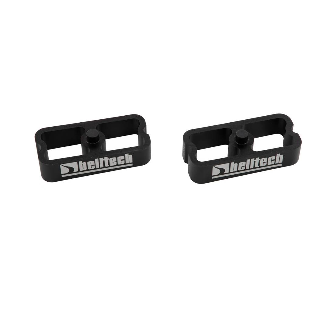 Belltech Lowering Blocks provide an inexpensive, easy to install way to lower your Mini Truck by increasing the distance between the leaf spring and the axle, effectively lowering the vehicle. Belltech lowering block kits are manufactured of high-quality extruded aluminum and come complete with blocks, U-bolts, Nyloc nuts and washers. The extruded aluminum process yields higher strength ratings when compared to cast or steel lowering blocks (or other methods of manufacturing). Lowering blocks are designed to lower the rear of your vehicle in 1,2, 3- or 4-inch increments. Also available with built in 2-degree taper for drive line angle correction.