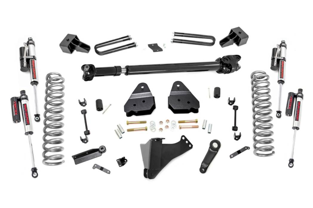 55951 | Rough Country 4.5 Inch Lift Kit, Dually, For Ford F-350 Super Duty 4WD | Vertex Reservoir Shocks, Includes Front Driveshaft