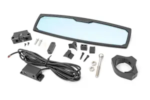 Gain better visibility for your UTV inside the cab and out with Rough Country's Aluminum Rear View Mirror with dome light. The sturdy aluminum frame and reinforced mirror surface is designed for a long lifespan of durability and performance in any off-road environment.