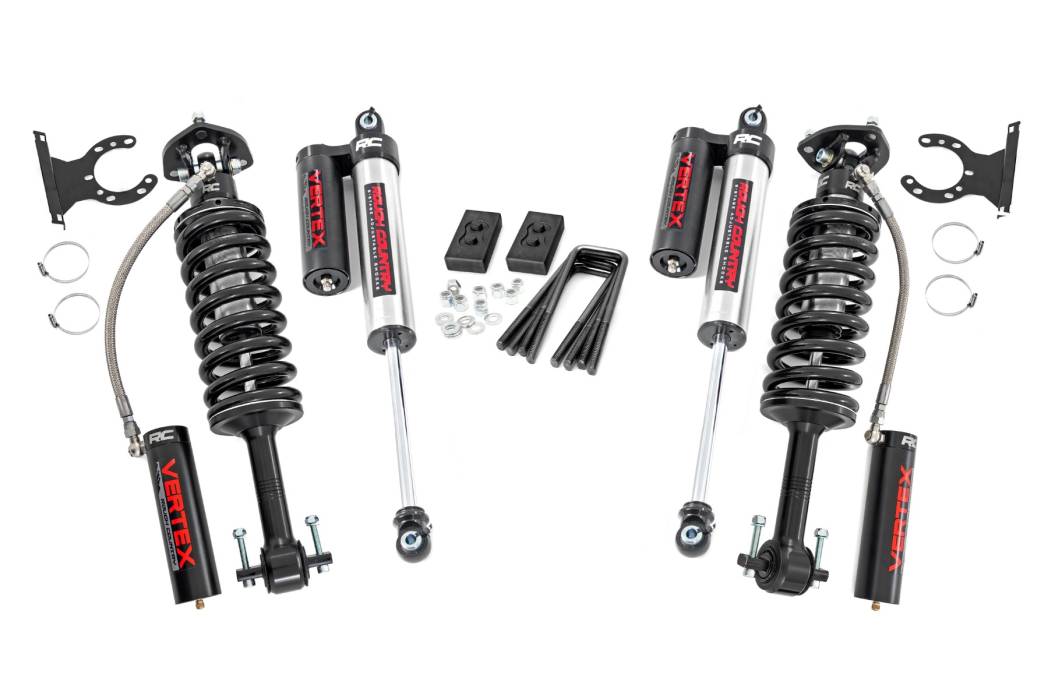58650 | Rough Country 2 Inch Lift Kit For Ford F-150 4WD | Vertex Coilovers, Vertex Reservoir Shocks
