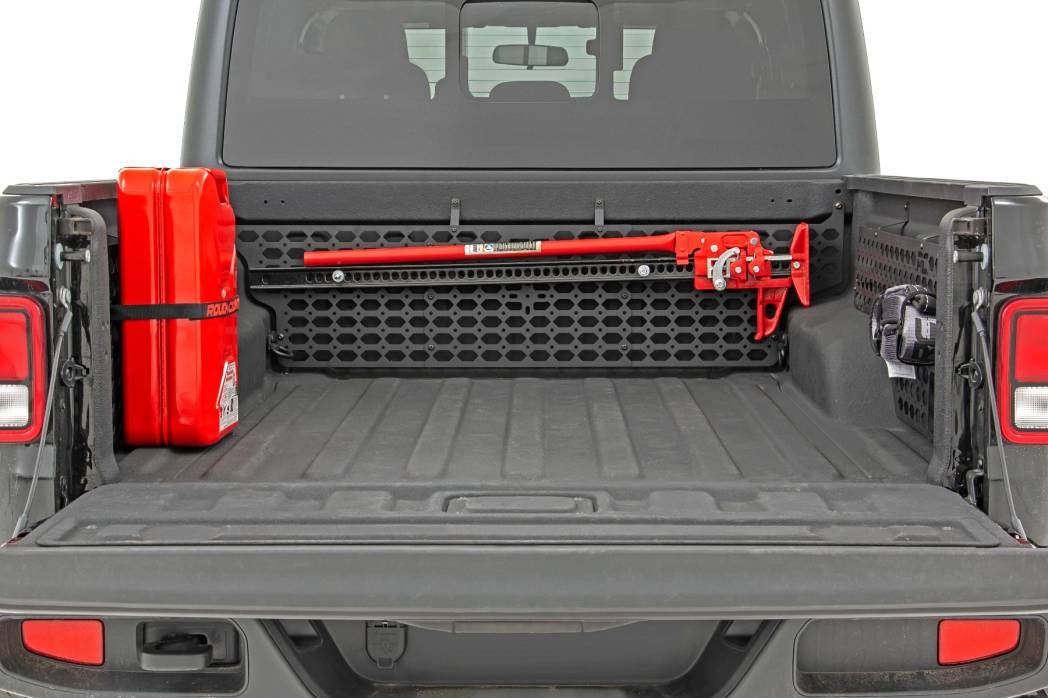 Whether your rig is a workhorse or off-road overlander, this kit can be customized to get the job done. This modern solution easily secures to the side of your Gladiator's bed. Rough Country's Molle Rack system is constructed of heavy-duty 1/8" thick steel and is coated with a durable powder coat finish!