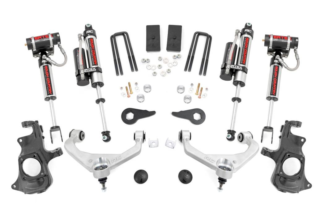 95750 | Rough Country 3.5 Inch Lift Kit For Chevrolet /GMC 2500 HD & 3500 HD No Factory Rear Overload Springs, Aluminum Finish Arm, Vertex Reservoir Shocks