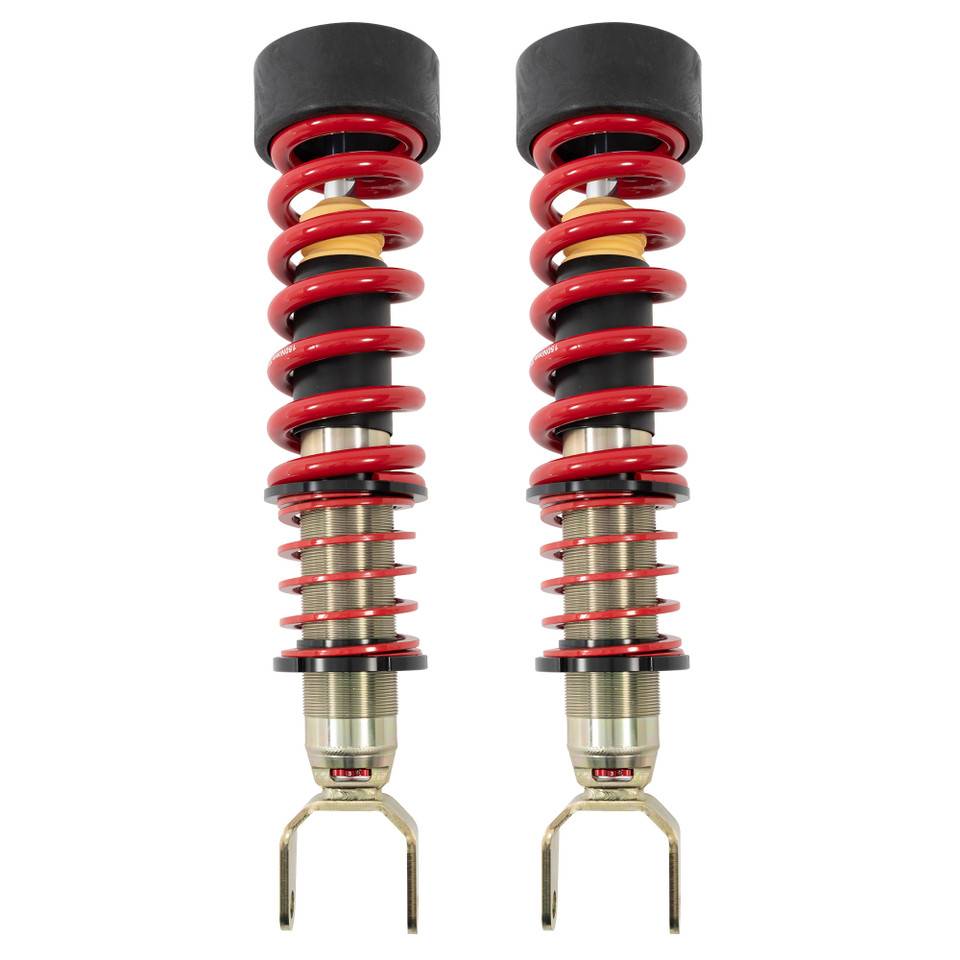 The Street Performance dampers feature a large 60mm body, a 20mm hardened chrome piston rod, and 35mm independent rebound and compression valves. All of which work together to keep oil cool for consistent damping that does not fade while in motion. With 18 settings of rebound and 12 settings of compression adjustability, damping adjustments allow you to control the firmness or softness of the suspension, providing versatility for various driving conditions and preferences. Height adjustability is achieved using a trapezoidal threaded damper body and a spring perch that can be moved along the threads into the perfect placement for you. Once set, it will not change or adjust its position on its own. With customizable ride height, Belltech engineers were sure to add a progressive rate polymer, open-cell, bump stop, and packers to ensure the bump stop engagement is ideal for each height option. This finely tuned technology adds to a balanced ride and prevents bottoming out when driving on imperfect roads or rolling over speed bumps. The high tensile steel springs are brightly powder-coated red for an eye-catching, long lasting, protective finish.