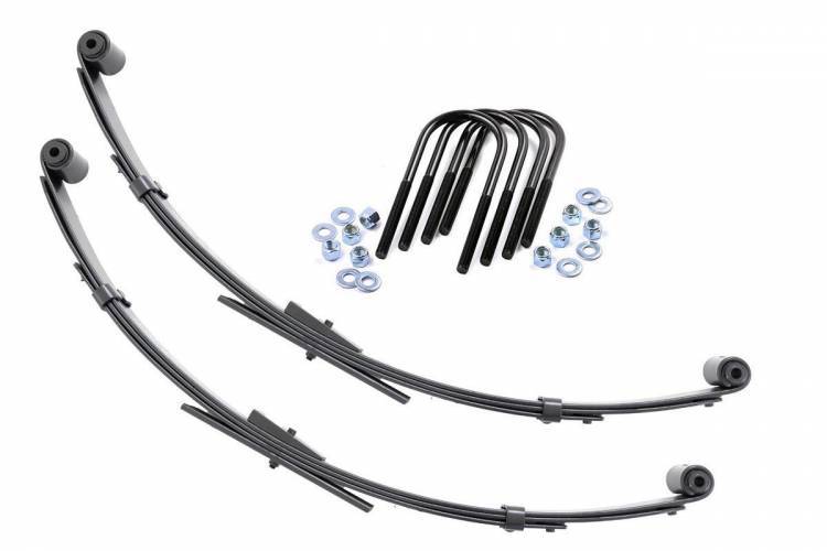 Durable and Off-Road Ready. Rough Country's Replacement Leaf Springs are designed to tackle any terrain that they are faced with. Featuring a multi-leaf design and spring pads this reduces the friction and maximizes comfort. Each leaf pack utilizes tapered leaves for improved flexibility at their ends.