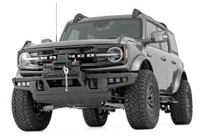 51099 | Rough Country High Winch Mount For Factory Modular Bumper Ford Bronco 4WD | 2021-2023 | With PRO12000S Winch, Black Series With White DRL Light Bar