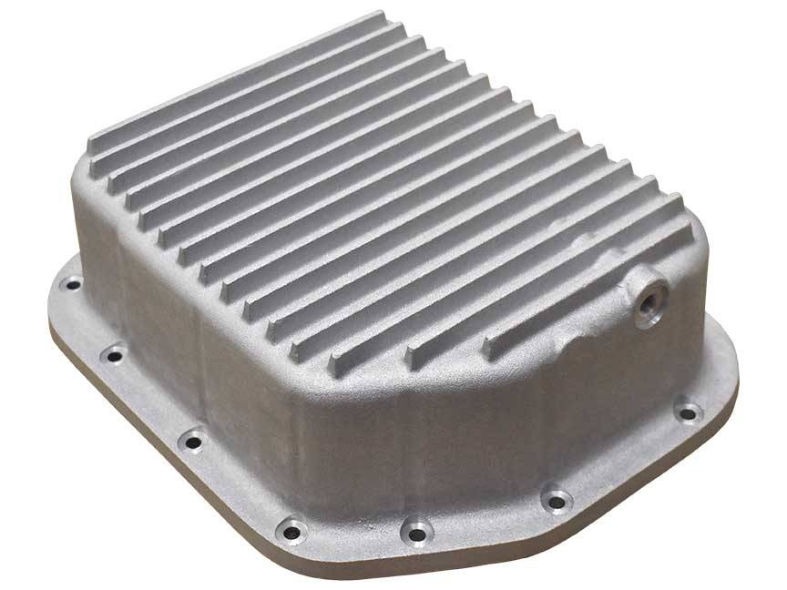 The pan has cast-in baffles to reduce sloshing. Baffles also act as a heat sink to reduce fluid temperatures. The flange surface is machined flat for a secure seal on the transmission housing.