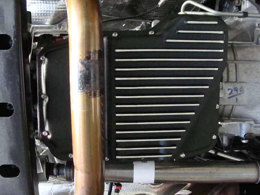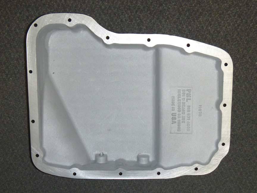 Inside of pans. Extra capacity pans, PML part numbers 11079, 10304, and 11161 have baffles to reduce sloshing, keep fluid near filter pickup, and act as heat sinks for cooling.