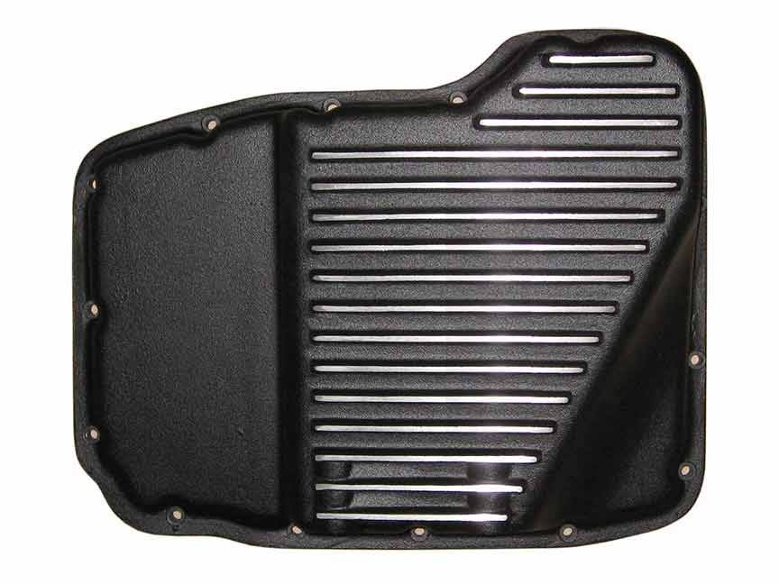 PML designed this stock capacity transmission oil pan to replace the stock pan on many configurations of these vehicles with a Chrysler Dodge 45RFE, 545RFE, 65RFE, 66RFE, and 68RFE. Although this transmission pan has the same capacity as the stock pan, the thick walls and fins on the bottom make it larger than stock.