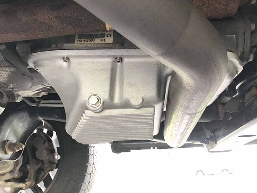 PML designed this 2 quart over stock transmission oil pan with a step at the rear to clear the exhaust routed under the stock pan on some trucks and SUVs, including those with Hemi engines. This pan can replace the stock pan on many configurations of these vehicles with a Chrysler Dodge 45RFE, 545RFE, 65RFE, 66RFE, and 68RFE. Here are some examples of vehicles that this pan may fit: