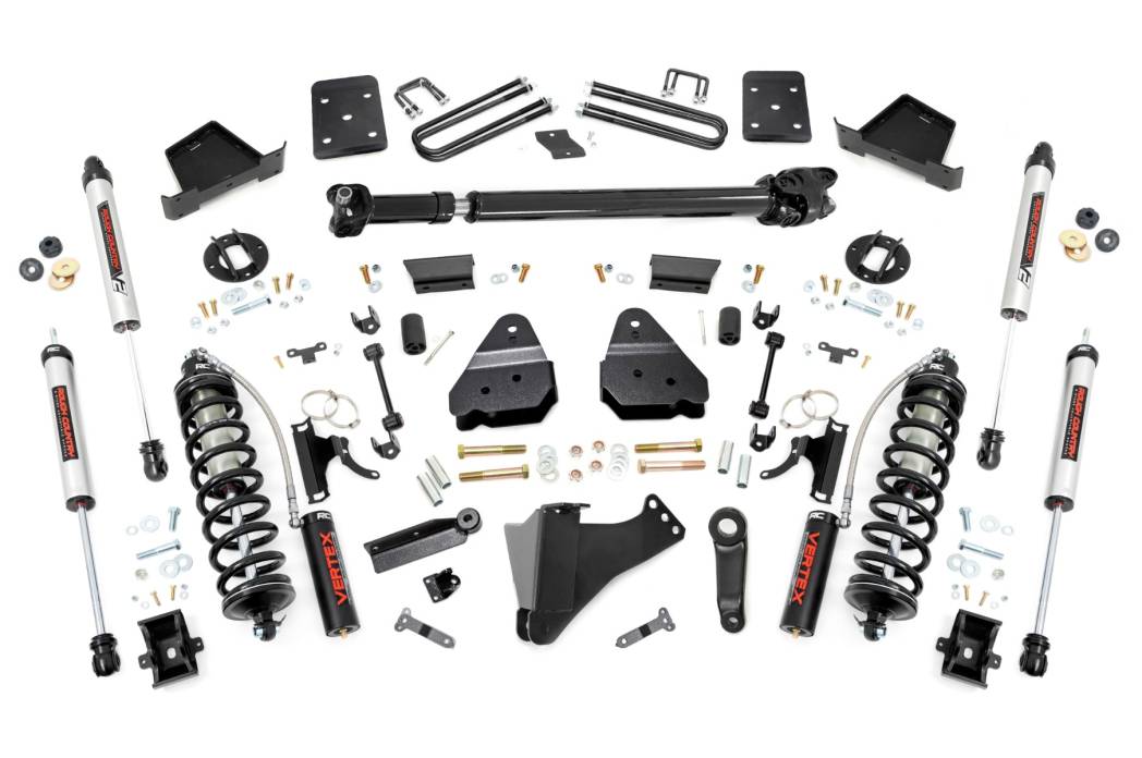 51758 | Rough Country 6 Inch Coilover Conversion Lift Kit For Diesel Ford F-250/F-350 Super Duty | 2017-2022 | 4" Axle, Rear Factory Springs, Rear V2 Shocks, Front Drive Shaft