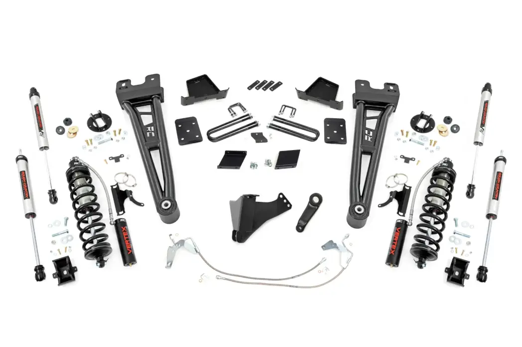 Take your third-generation Ford Super Duty to new heights with Rough Country's 6-inch Radius Arm Coilover Conversion Suspension Lift! This all-inclusive kit comes with everything you need for a total transformation of your truck. Run up to 37in tires while preserving the smooth, factory ride quality with this impressive upgrade.