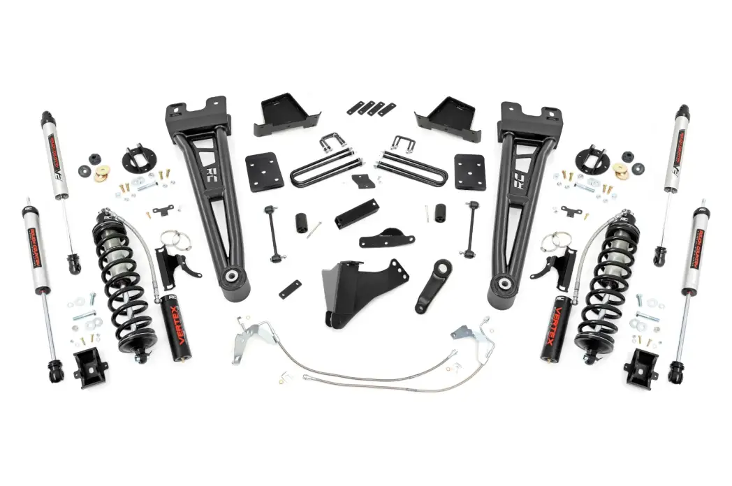 Take your second-generation Ford Super Duty to new heights with Rough Country's 6-inch Radius Arm Coilover Conversion Suspension Lift! This all-inclusive kit comes with everything you need for a total transformation of your truck. Run up to 37in tires while preserving the smooth, factory ride quality with this impressive upgrade.