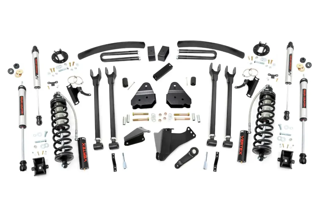 57858 | Rough Country 6 Inch Coilover Conversion Lift Kit With 4 Link Setup For Ford F-250/F-350 Super Duty | 2005-2007 | Gas, No Rear Factory Springs, Rear V2 Shocks