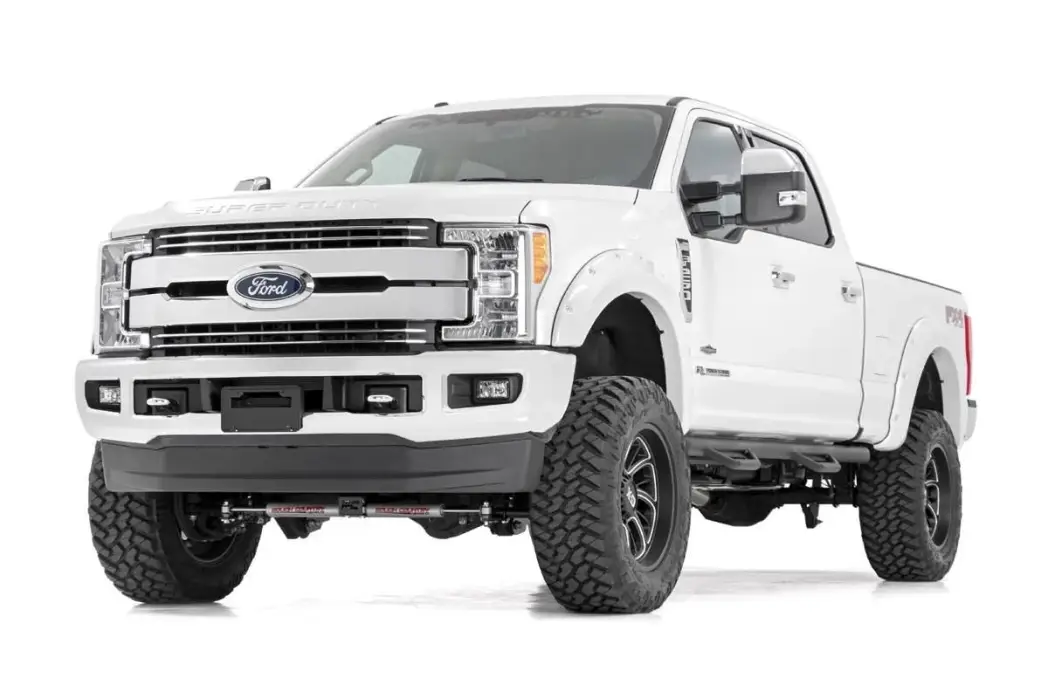 Give your fourth-generation Ford Super Duty superior lift height with Rough Country's 4.5-inch Coilover Suspension Lift Kit! This all-inclusive kit comes with everything you need for a total transformation of your truck. Run up to 35in tires while preserving the smooth, factory ride quality with this impressive upgrade.
