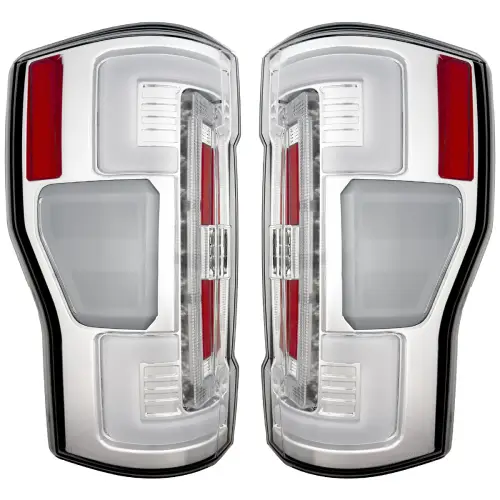 Looking for the hottest new OLED tail lights? Look no further than this set from RECON Truck Accessories, suitable for your 2020-2022 Ford Super Duty F250, F350, F450, F550. These LED tail lights feature ultra high-power OLEDs, they're the brightest we offer with a unique lens color that's sure to stand out in a crowd. Make sure you order the correct set for your truck based on whether you have OEM factory-installed LED tail lights or factory installed OEM Halogen tail lights.