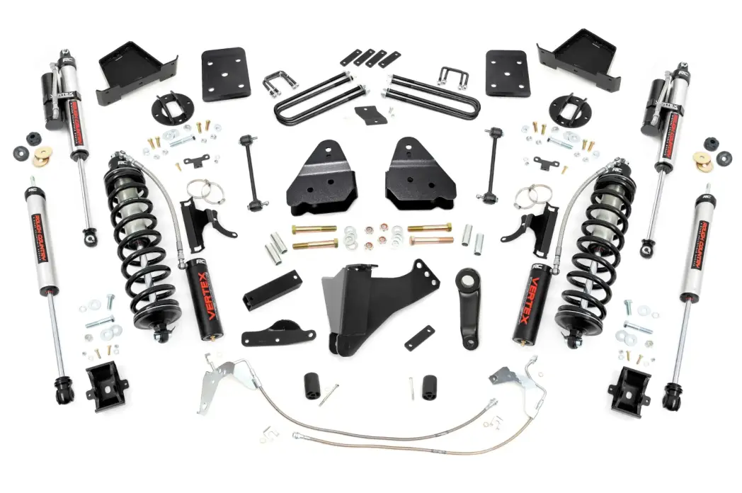 Give your second-generation Ford Super Duty superior lift height with Rough Country's 4.5-inch Coilover Suspension Lift Kit! This all-inclusive kit comes with everything you need for a total transformation of your truck. Run up to 35in tires while preserving the smooth, factory ride quality with this impressive upgrade.