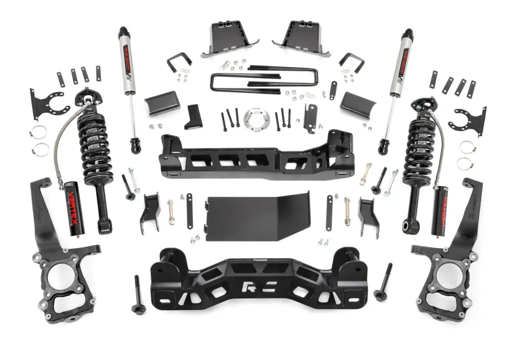 57657 | Rough Country 6 Inch Lift Kit For Ford F-150 4WD | Vertex Coilovers With V2 Rear Shocks