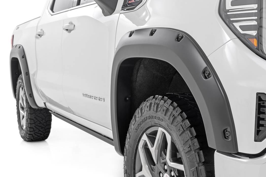 F-C11950A-GAZ | Rough Country Pocket Fender Flare For GMC Sierra 1500 2WD/4WD (2019-2025) | Summit White