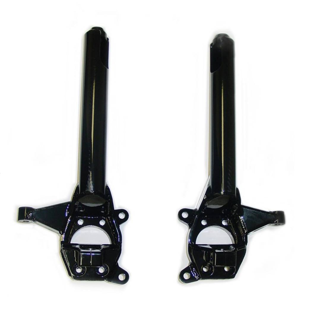 SPINDLES ARE CONSTRUCTED OF PRECISION LASER CUT 1/4 OR THICKER STEEL, CNC MACHINED BALL JOINT TAPERS, AND COMPLETELY MIG WELDED.
