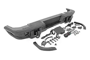 Stylish Features and Construction. Rough Country’s Rear Bumper features an all-steel construction for serious durability and comes coated in a corrosion-resistant, textured black powder coat to withstand the elements. This rear bumper offers a robust design and includes two 2" Black Series LED pods that boast 2880 lumens of raw power to ensure that you can see any obstacle behind you!