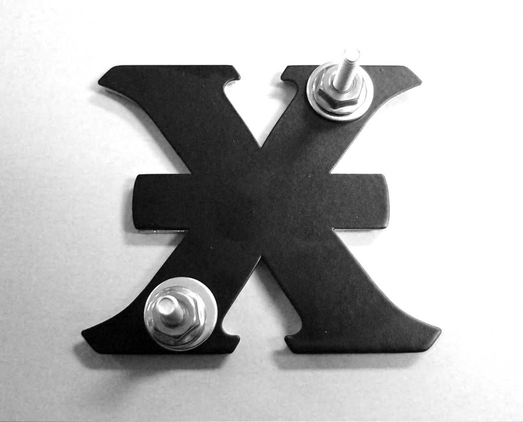 Small Brushed X-Metal Logo, 2 1/4 Inch Height x 2 2/1 Inch Wide