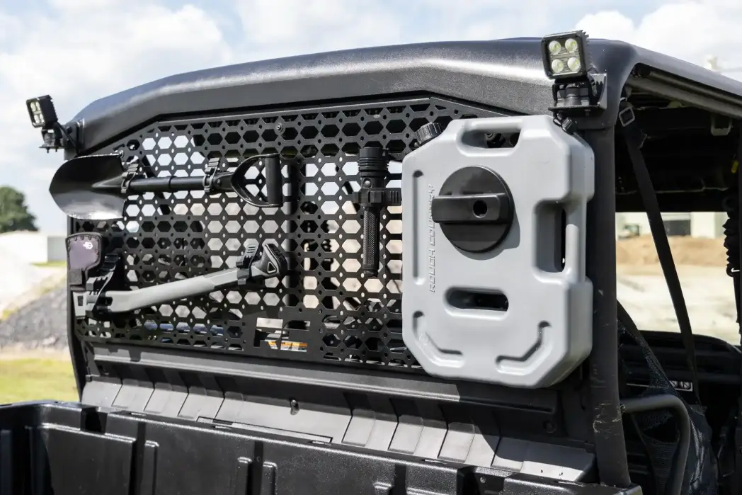 Tame the Chaos in Your Can-Am Defender with the Rough Country Rear Molle Panel. Say goodbye to limited storage and customization hassles for your UTV. This panel is the solution to your storage and customization problems. It's not just an accessory; it's a must-have improvement that turns your Defender into a more capable off-road machine.