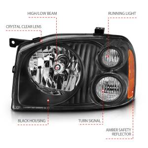 NISSAN FRONTIER 01-04 CRYSTAL HEADLIGHT BLACK