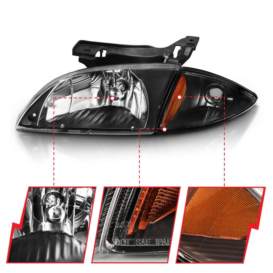 CHEVY CAVALIER 00-02 CRYSTAL HEADLIGHTS BLACK W/ CORNER LIGHT 2PC
