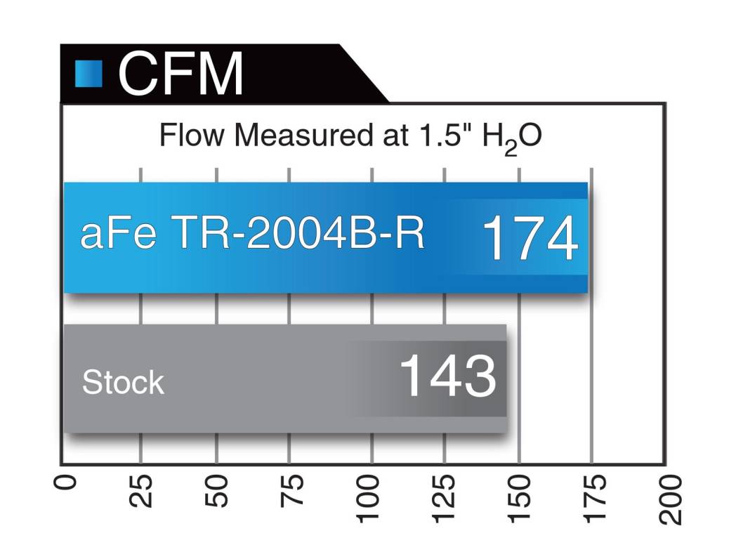 This intake system utilizes a pre-oiled, large 5" tall conical 360 degree radial flow performance air filter with 5-layers of progressive finer mesh cotton media providing maximum airflow and performance.