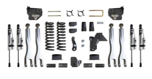 Including diesel coils, forged aluminum 4 links, trac bar bracket, pitman arm, sway bar brackets, bump stops, rear air bag spacers, trac bar bracket, sway bar brackets, bump stop extensions & front/rear Vulcan series shocks.