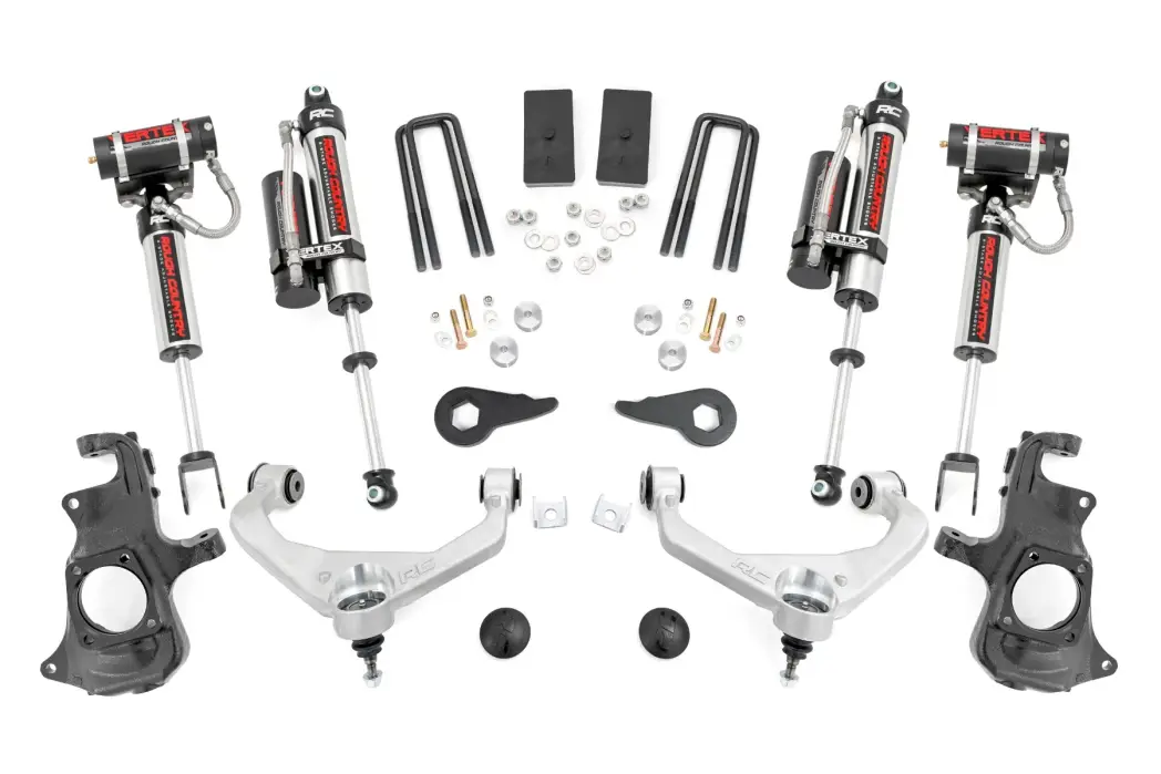 97650 | Rough Country 3.5 Inch Lift Kit For Chevrolet Silverado / GMC Sierra 2500 HD & 3500 HD 2WD/4WD | No Factory Rear Overloads, Aluminum Arm Finish, Vertex Reservoir Shocks