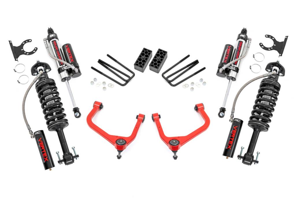 29550RED | Rough Country 3.5 Inch Lift Kit With Red Control Arms Vertex Coilovers / Vertex Rear Shocks (2019-2024 Silverado 1500 2WD/4WD | Multi Leaf Springs)