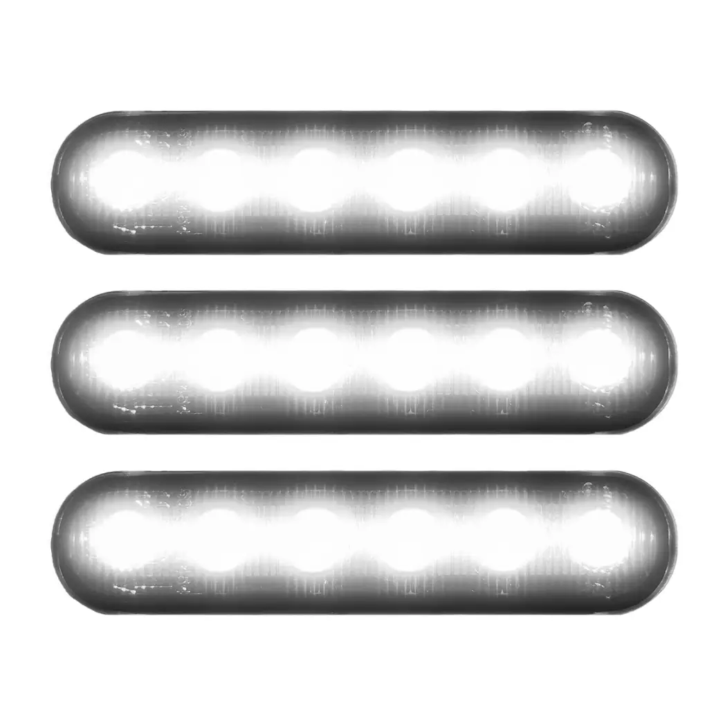 - each light is 3"wide x 5/8" tall and 3/4" deep