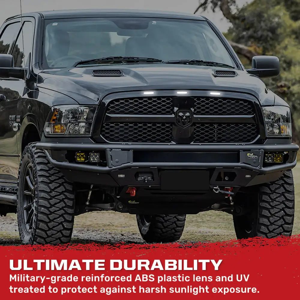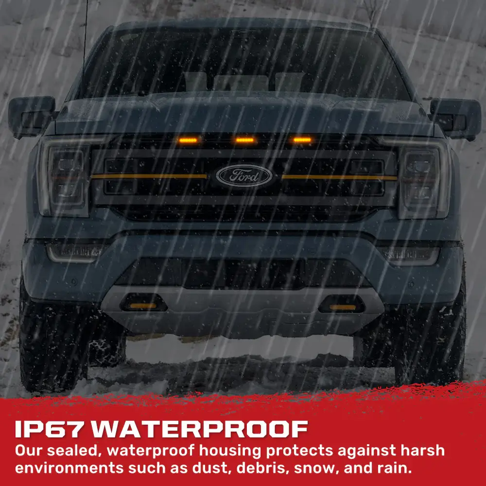 These LED grille lights will provide your truck with the ultimate visibility on the road regardless what driving conditions you find yourself in. Having the best and brightest tail lights on your truck is essential. Built with military-grade reinforced ABS plastic lenses, these front grille LED lights are impact-resistant and have an impressive 50,000+ hour lifespan. They are also IP67 waterproof, (dust, water, snow) and UV-treated for protection against the harsh elements.