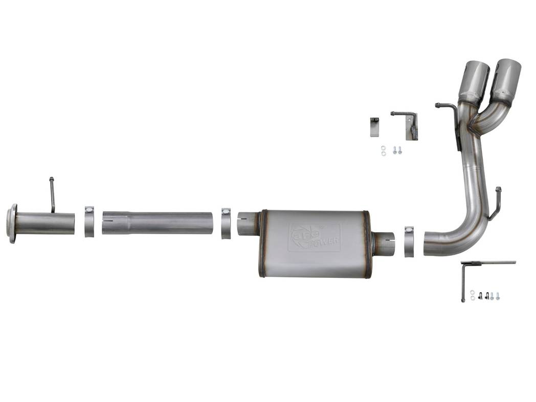 Dual 3-1/2" diameter polished 304 stainless steel tips with a laser-etched aFe power logo are designed to exit in front of the rear passenger side tire for a unique, aggressive look.