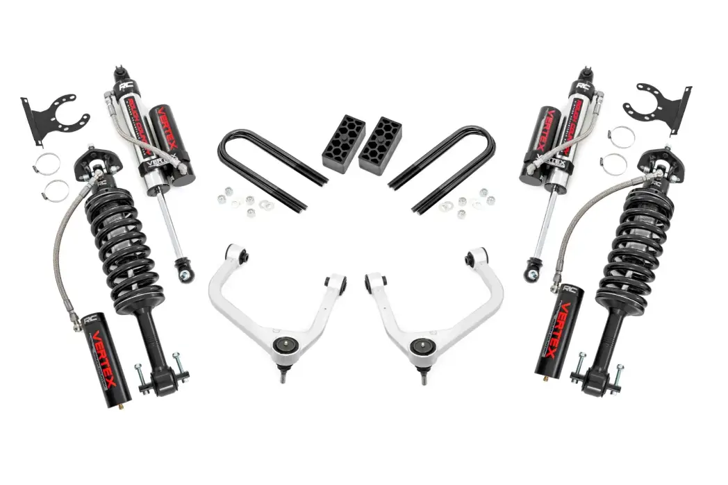 110450 | Rough Country 3.5 Inch Lift Kit For Chevrolet Silverado 1500 | Aluminum Finish, Rear Multi Leaf Spring, Vertex Coilovers With Vertex Shocks