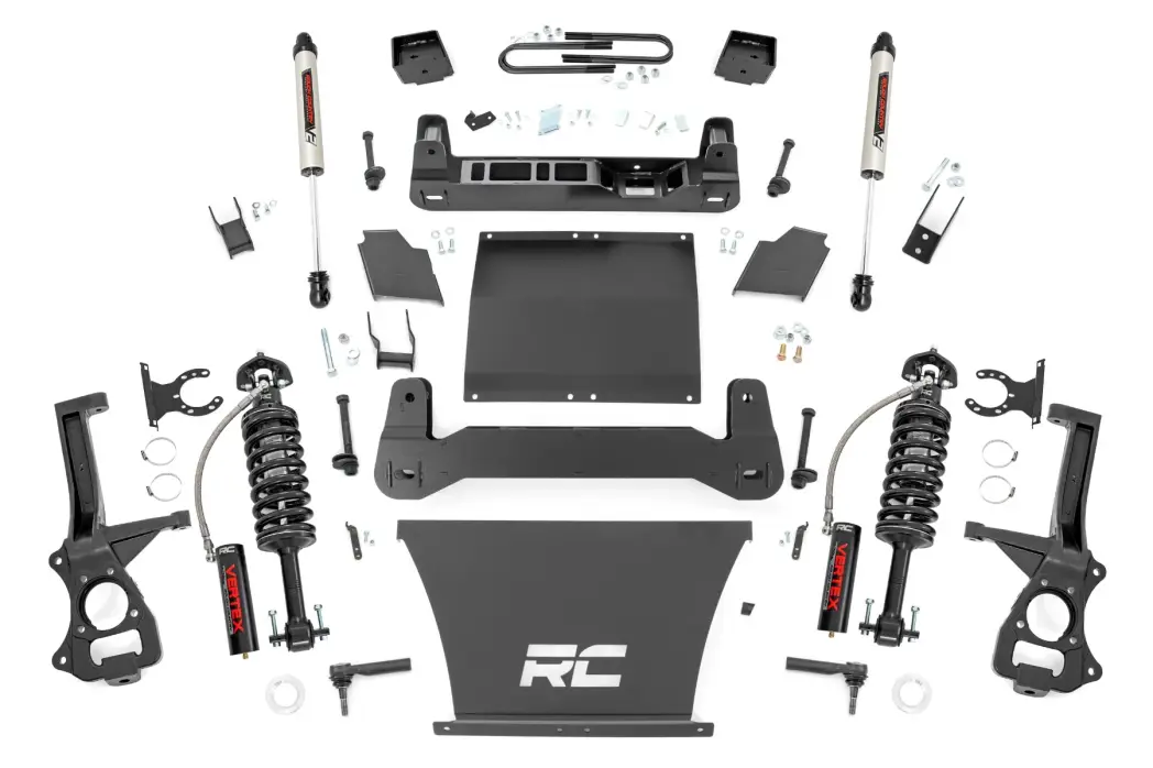 26657_A | Rough Country 6 Inch Lift Kit For GMC Sierra 1500 4WD | 5.3L V8 or 6.2L V8 Engine, Factory Rear Mono-Leaf Springs, Vertex Coilovers With V2 Rear Shocks